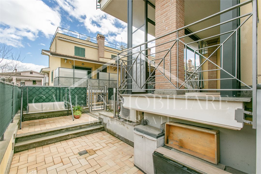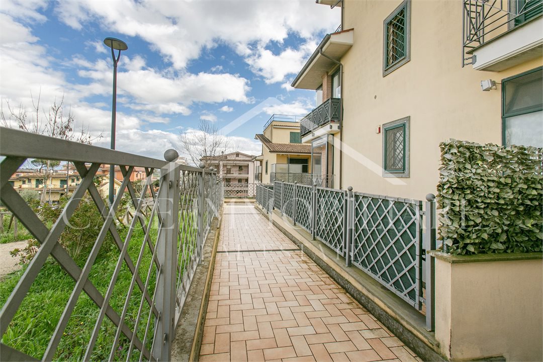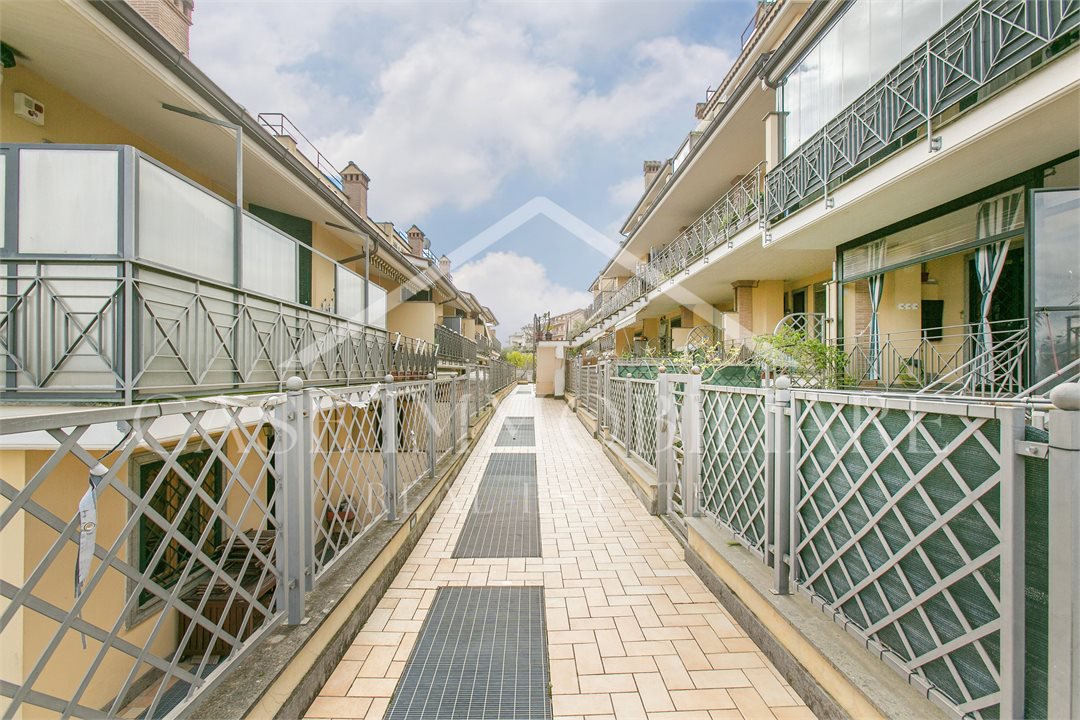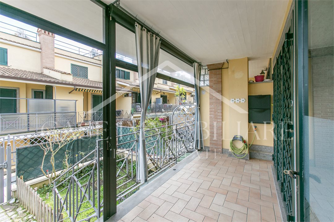 Dal vialetto pedonale su Valle Muricana, si arriva al cancello privato che da accesso diretto allo spazio esterno/giardino, da qui salendo qualche gradino si arriva all'ingresso principale con porta blindata, preceduta da un portico con tenda pvc amovibile che rende fruibile il portico anche in inverno.